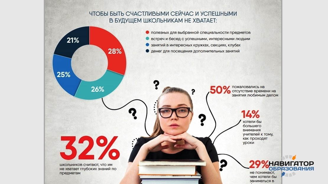 Общероссийский народный фронт провёл опрос среди обучающихся школ от 13 до 18 лет, по результатам которого оказалось, что школа не помогает своим ученикам в определении с будущей профессией, а домашние задания представляются чрезмерной нагрузкой. Критикуя нынешнюю ситуацию в образовании, школьники предложили и свои варианты её корректировки. В опросе принимали участие 2700 школьников из 81 региона РФ.